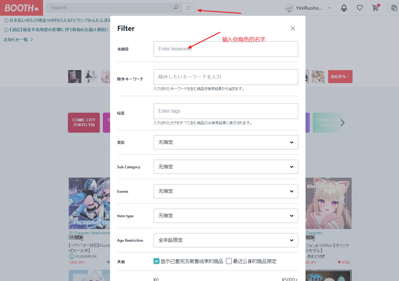 既然决心入坑,那么当然要给自己挑选一个喜欢的角色啦!于是在朋友的推荐下我选择在BOOTH - The International Indie Art Marketplace上寻找一个自己喜欢的角色。