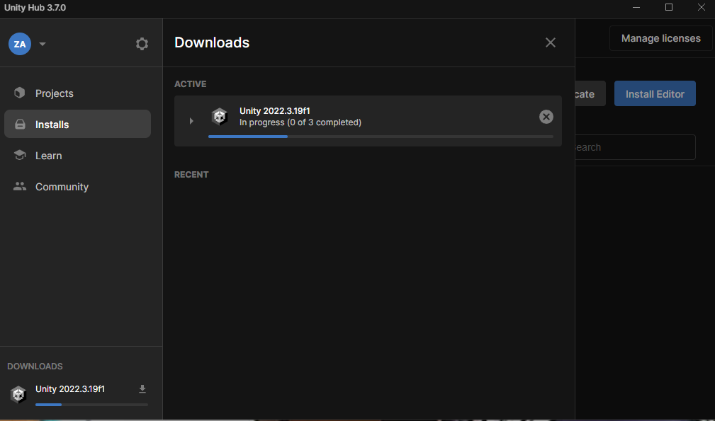 首先我们需要VRchat对应版本的unity,我们可以在这里看到下载并且进行安装 https://creators.vrchat.com/sdk/upgrade/current-unity-version/ (当前是2024年2月7日)安装完毕后登入并下载unity editor(太慢可以选择挂代理)