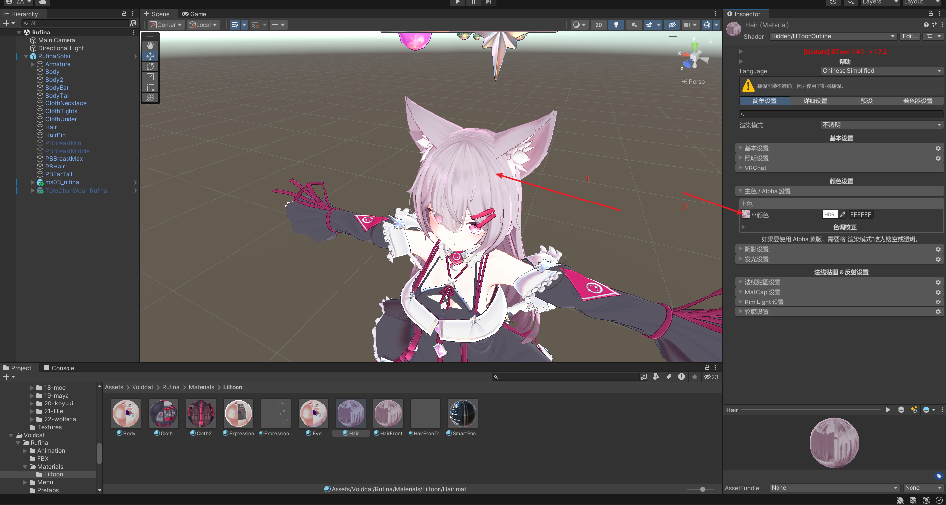 Rufina本身的头发颜色是粉紫色的,但是我是个坚定不移的白毛控,所以我们首先要来修改头发颜色!