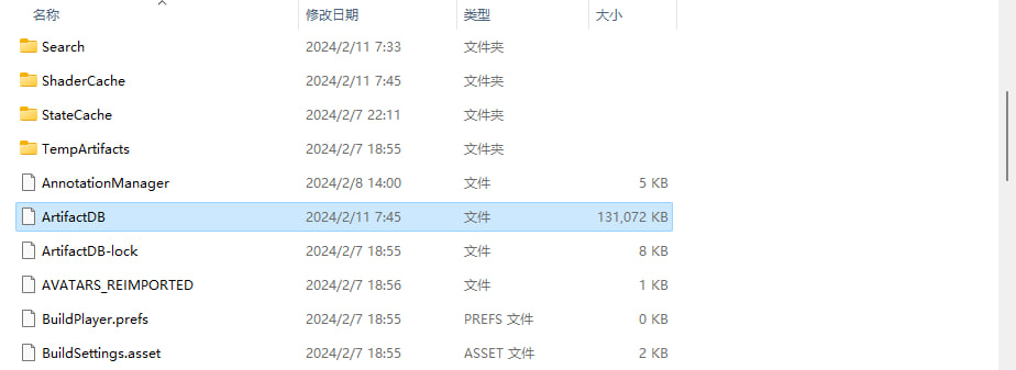 打开工程文件路径,找到./Library/ArtifactDB文件备份后删除,然后重启unity即可