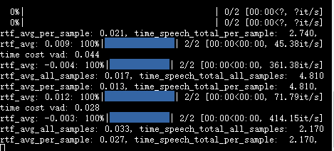 终端中出现进度条表明操作正确,稍后结果会输出在.../output/asr_opt中